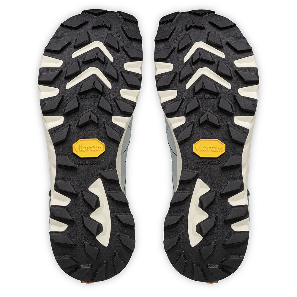 Die leichte Vibram® Megagrip Gummimischung auf LITEBASE Basis mit Traction Lug Technologie bietet überragende Rutschfestigkeit und ausdauernde Langlebigkeit.