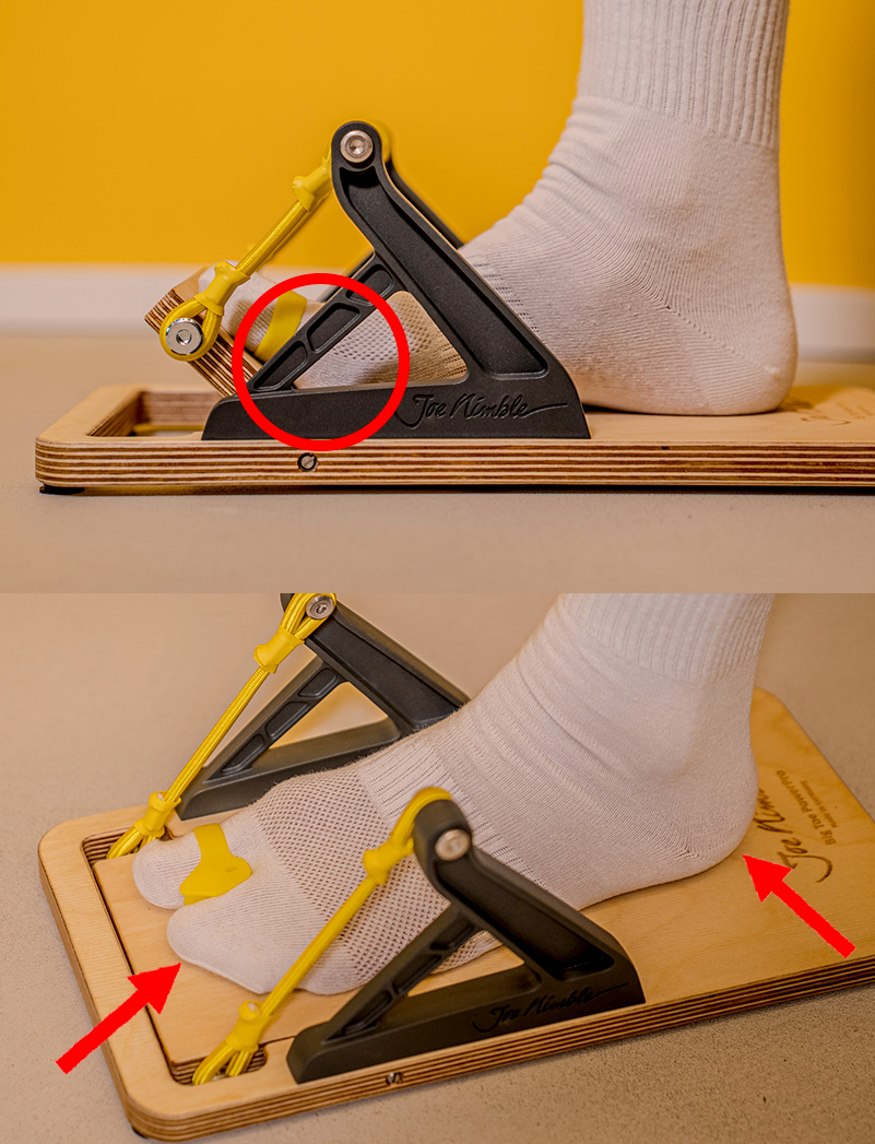 Die erste Übung in der Position "LOADING“ trainiert die Kraft der Großzehe und die Stabilität des Vorfußes für die mittlere Standphase des Laufens und die Übergangsphase des Springens und des Richtungswechsels, wenn eine maximale Kraft der Großzehe erforderlich ist.