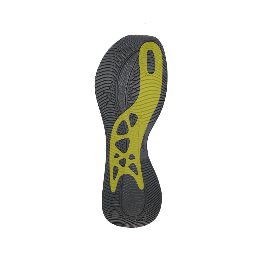 Das auf den Prinzipien der Biomimikry dem Gecko-Fuß nachempfundene Laufsohlen-Design aus Gummi ermöglicht sicheres, rutschfestes Laufen auf Asphalt.