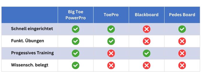 Zwei einfache Übungen mit dem Big Toe PowerPro - die nur drei Minuten dauern und viermal pro Woche durchgeführt werden - können große Wirkung erzielen. In nur 8 Wochen stärkt diese gezielte Routine die oft vernachlässigte Fußmuskulatur, insbesondere den großen Zeh, der eine Schlüsselrolle für Schnelligkeit, Stabilität und explosive Kraft spielt. Das Ergebnis: bessere Leistung in jeder Sportart.
