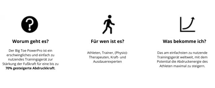 Im Gegensatz zu herkömmlichen und komplizierten Kraftübungen treibt der Big Toe PowerPro Deine sportliche Leistung auf ein bisher unerreichtes Niveau - und das bequem von zu Hause aus. Wir haben dieses professionelle Trainingsgerät für Sportler entwickelt, die ihre volle Antriebskraft entfesseln wollen. Der Big Toe PowerPro ist ein innovatives, einfaches Trainingsgerät, das Dir in jeder Sportart einen geradezu unfairen Vorteil verschaffen kann.