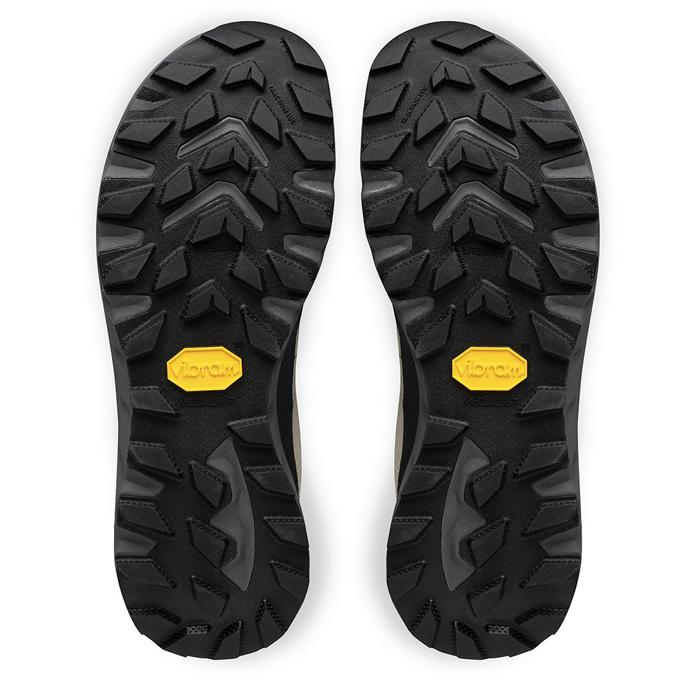 Die leichte Vibram® Megagrip Gummimischung auf LITEBASE Basis mit Traction Lug Technologie bietet überragende Rutschfestigkeit und ausdauernde Langlebigkeit.