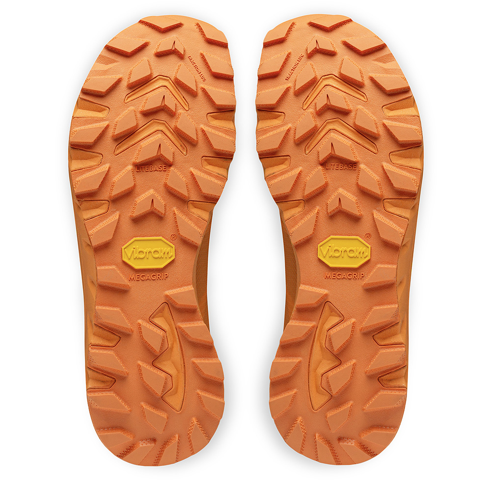 Die leichte Vibram® Megagrip Gummimischung auf LITEBASE Basis mit Traction Lug Technologie bietet überragende Rutschfestigkeit und ausdauernde Langlebigkeit.