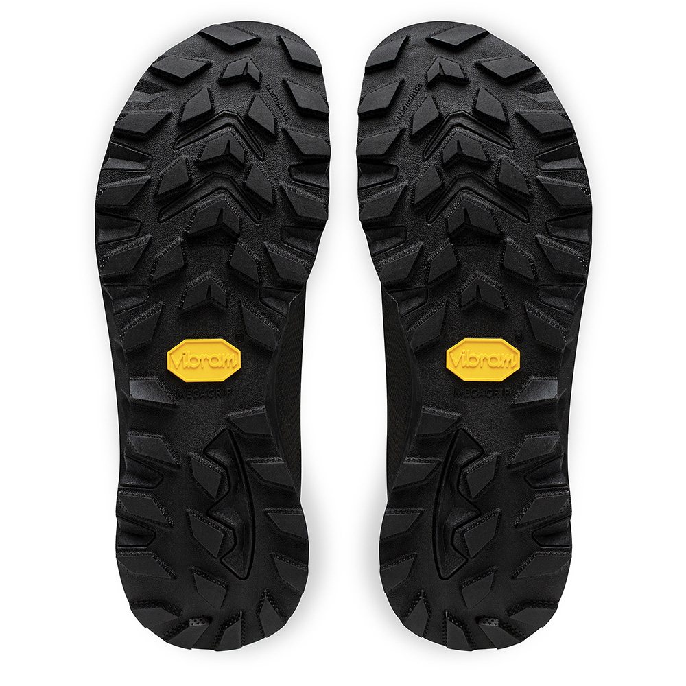 Die leichte Vibram® Megagrip Gummimischung auf LITEBASE Basis mit Traction Lug Technologie bietet überragende Rutschfestigkeit und ausdauernde Langlebigkeit.