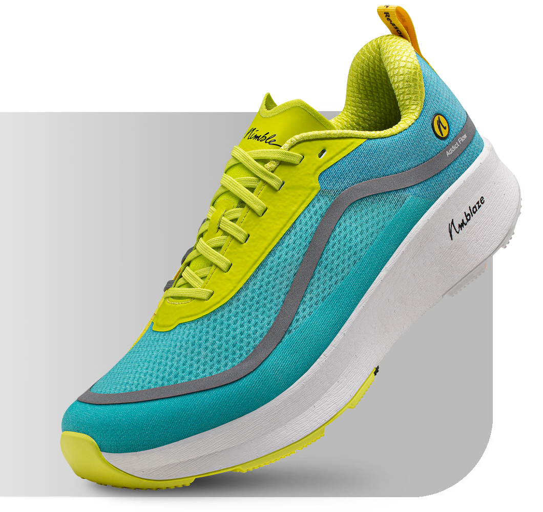 Der Addict Flow liefert bei gleicher Geschwindigkeit 13% mehr Flugphase als ein klassischer Laufschuh. Das bedeutet konkret, bei einem Marathon benötigst Du etwa 1.000 Schritte weniger.