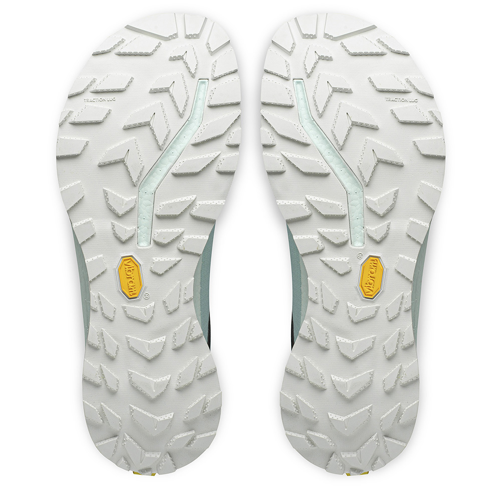 In collaboration with Vibram, we have developed a running sole based on the durable Megagrip compound that offers a high degree of slip resistance, stability, and comfort with low abrasion and weight.