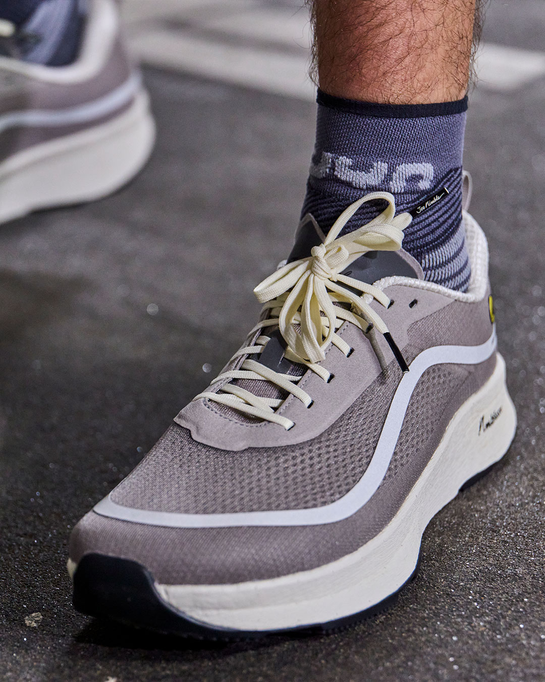 Über 8.000 eTPU-Kügelchen pro Sohle schaffen leichte, elastische Kissen für eine hochreaktive Dämpfung und über 74% höhere Energierückgabe im Vergleich zu Standard-Schäumen.